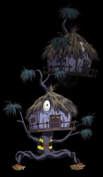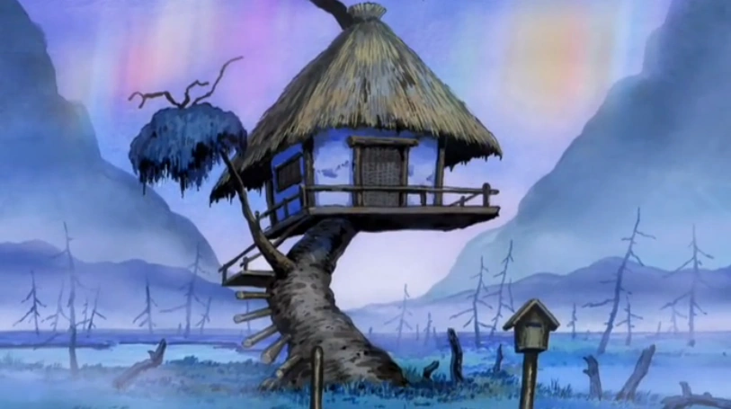 It grew fearful after being taken down once by Tsuchi-Korobi and after seeing Kitarō get defeated, too. After Medama-Oyaji told the GeGeGe House that it is the only one able to defeat Tsuchi-Korobi and should be courageous like Kitarō, it shook off its fear. After Kitaro got back up with the help of Neko-Musume and Nezumi-Otoko, the GeGeGe House and Kitaro brought down Tsuchi-Korobi together. After the battle, Ido-Sennin arrived with a new substance that can reverse the effects placed on the House. It happily took the substance and used it immediately, reverting back into a normal tree house, far from where it is supposed to be. Nurikabe lifted the House and brought it back to its original location.[2]