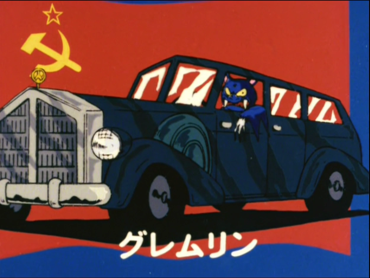In the 1985 anime, Gremlin now physically messes with the other yōkai's cars. He also doesn't care about the well-being of humans, driving past them and into their buildings.