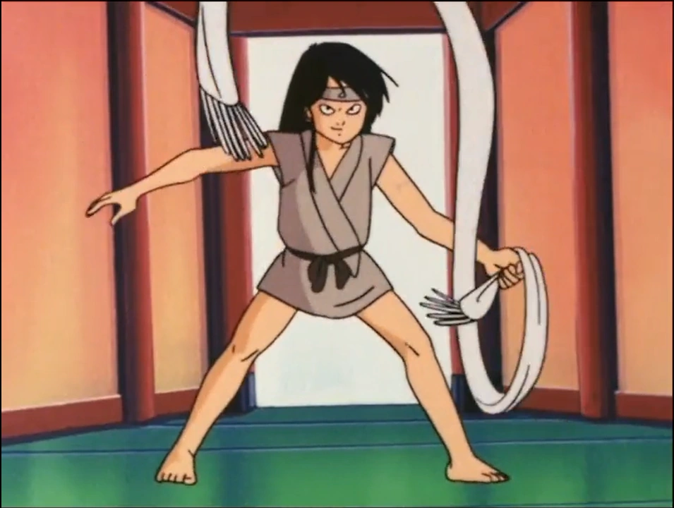 Object Stiffness Manipulation: Jigoku-Dōji has the ability to change the stiffness of objects such as ropes and pieces of cloth with his Yōkai Energy and use them as whips, ropes, shields, or swords. He can freely control it in a manner similar to an extra limb, where he can block multiple attacks such as Kitarō's hair needles at once, and grab distant targets.