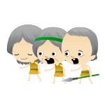 Kuroppokojin are three, fair-skinned, old people, three female and one male, all having gray hair.