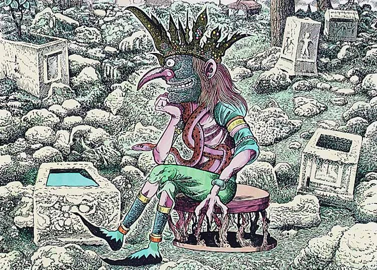 Pluto, under Satan, occupied Kyōkan Jigoku and was living in his palace while preying on deaths. His subordinate, a dragonewt named Dragon or Han-Ryūjin was carrying humans to his master, including Shigeru Mizuki, who accidentally wandered into the Jigoku.